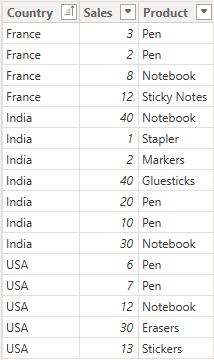 Let's take a look on how calculate behaves with this sample input dataset, which has 3 columns - Country, Sales and Product.