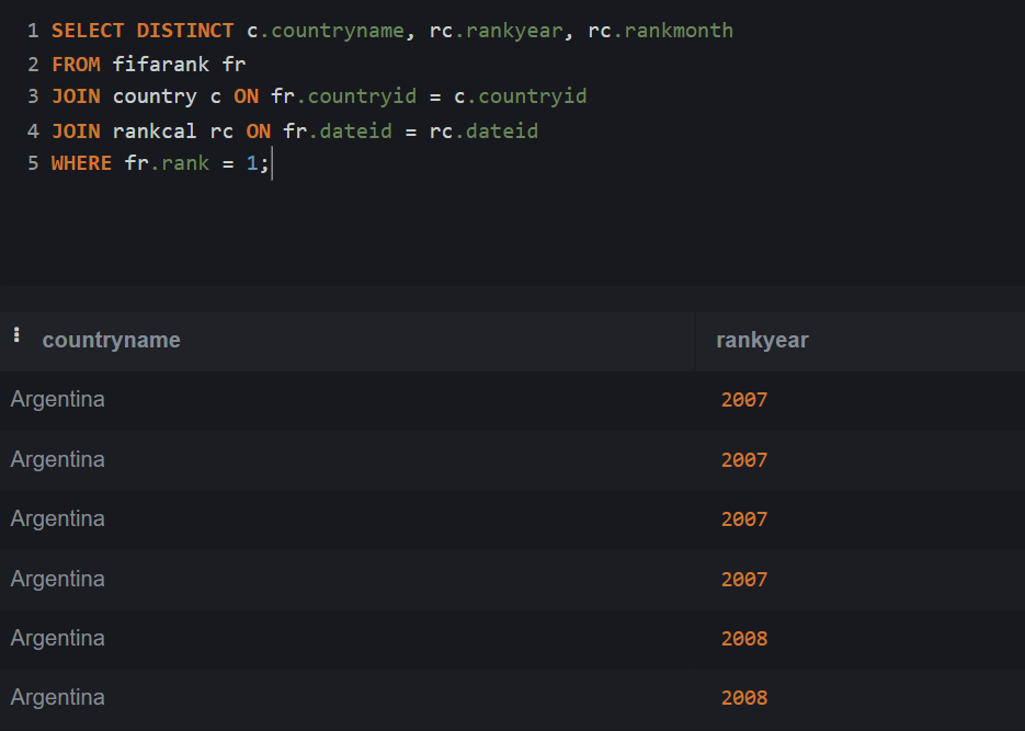 Now, let's insert data into fifarank table.