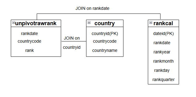 INSERT INTO unpivotrawrank (rankdate, countrycode, rank)