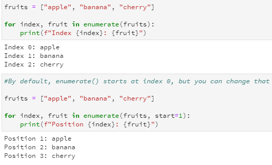 In Python, enumerate() is a built-in function that makes iteration more convenient by providing both the index and value of elements in a list (or any iterable). enumerate() is preferred over range(len(list)) because it’s more readable!