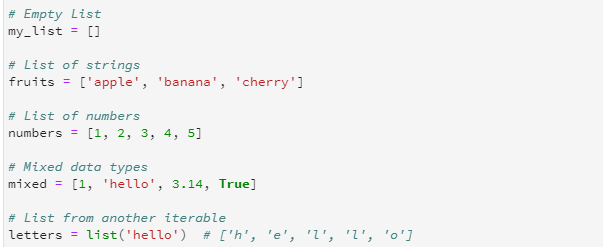 Iteration over a list means going through each element one by one using loops. The most common way to iterate over a list is with a for loop.
