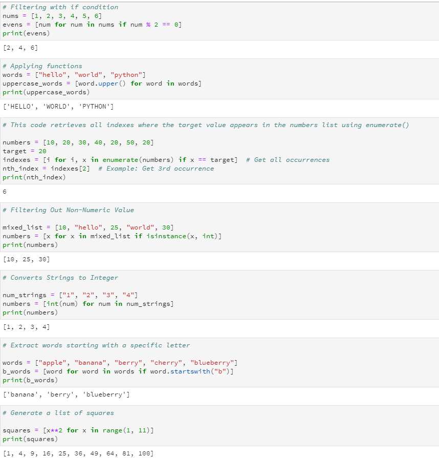 Basic structure: new_list = [expression for item in iterable if condition]