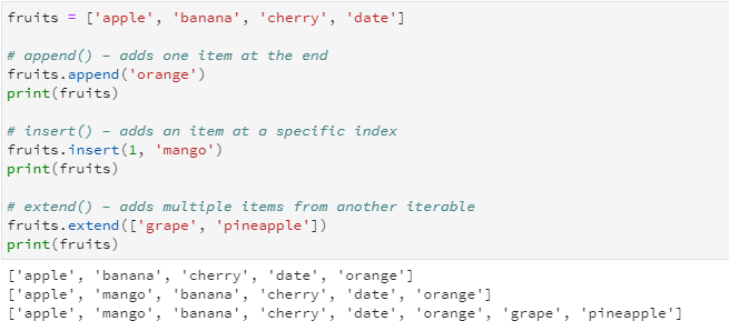 If you try to access an index that doesn’t exist (like fruits[5]), Python will give an IndexError.